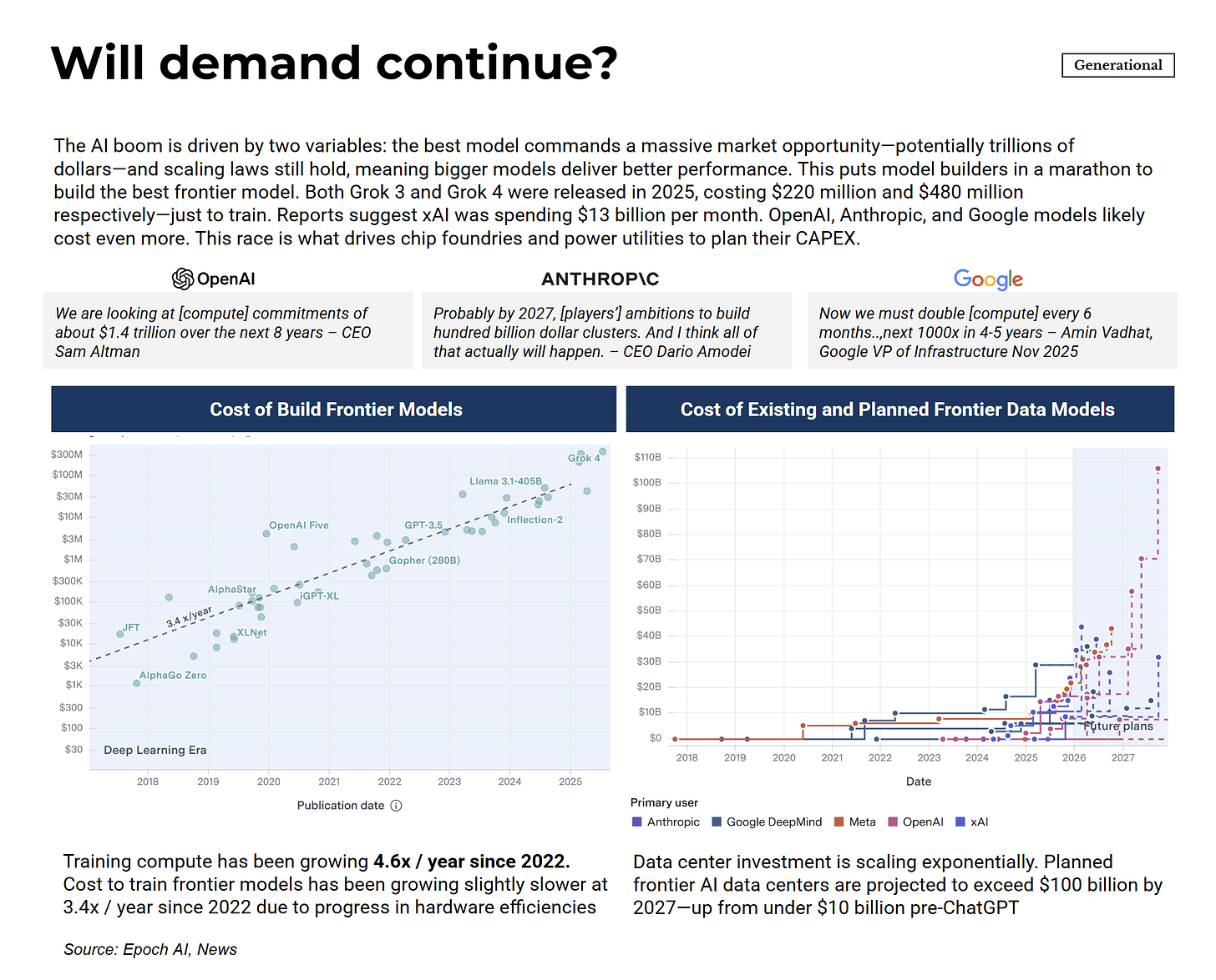 The AI buildout requires approximately $2.9 trillion in data center capital expenditure through 2028. The hyperscalers are spending aggressively and so is OpenAI. CEO Sam Altman references $1.4 trillion in compute commitments over eight years. Dario Amodei describes ambitions for hundred-billion-dollar training clusters. Google’s infrastructure leadership talks about doubling compute every six months.