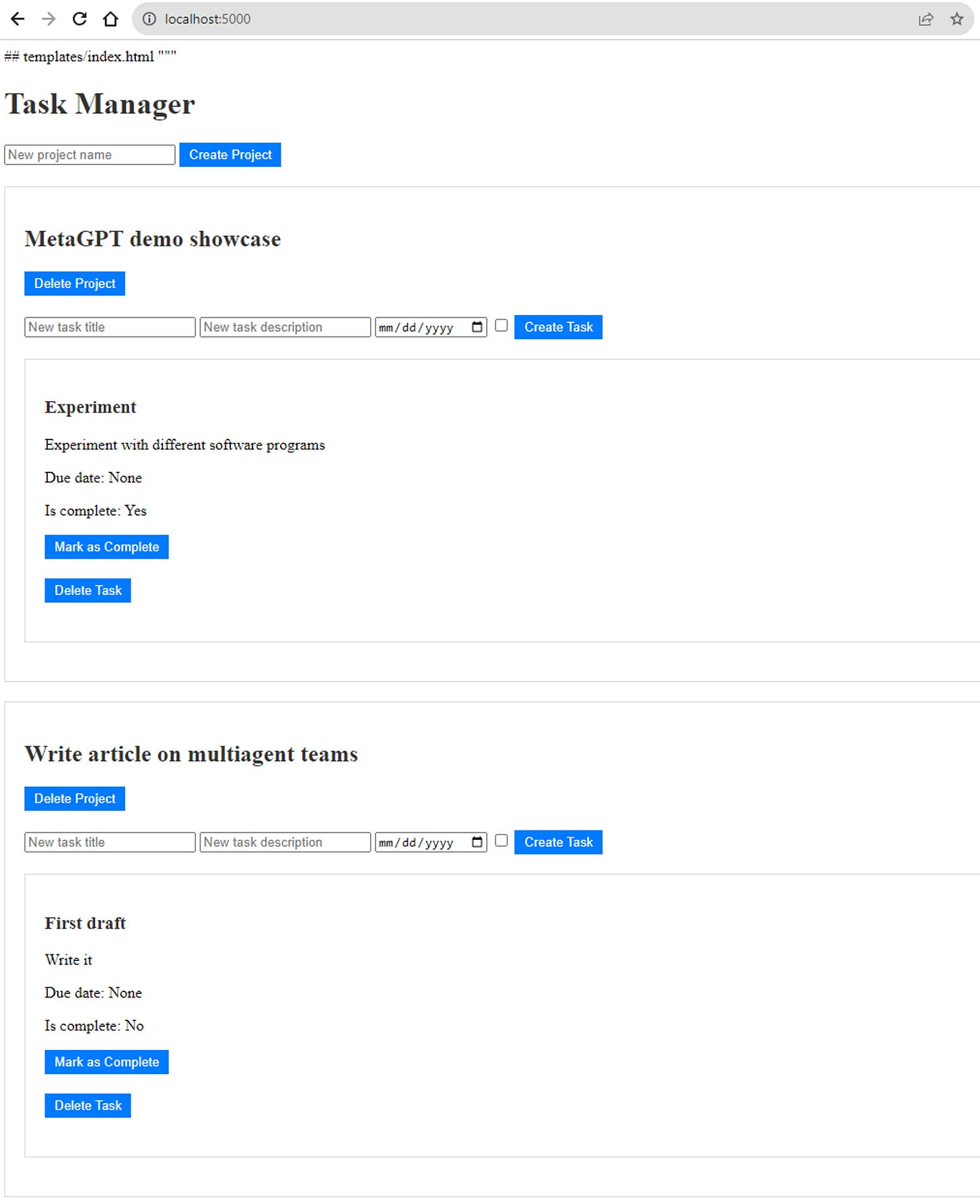 That’s amazing. I had to see it for myself. So I installed MetaGPT and asked it to write a task management software. Out came an almost working codebase. I still had to do some debugging but hey, it worked. It was complete with a SQL database, HTML templates, and a Flask-based Python script to stitch everything together. For $1.50 worth of API calls and 10 minutes, I got an entire AI team built an app with detailed documentation. I could have shaved half the time & cost if I didn’t instruct the agents to do code reviews.