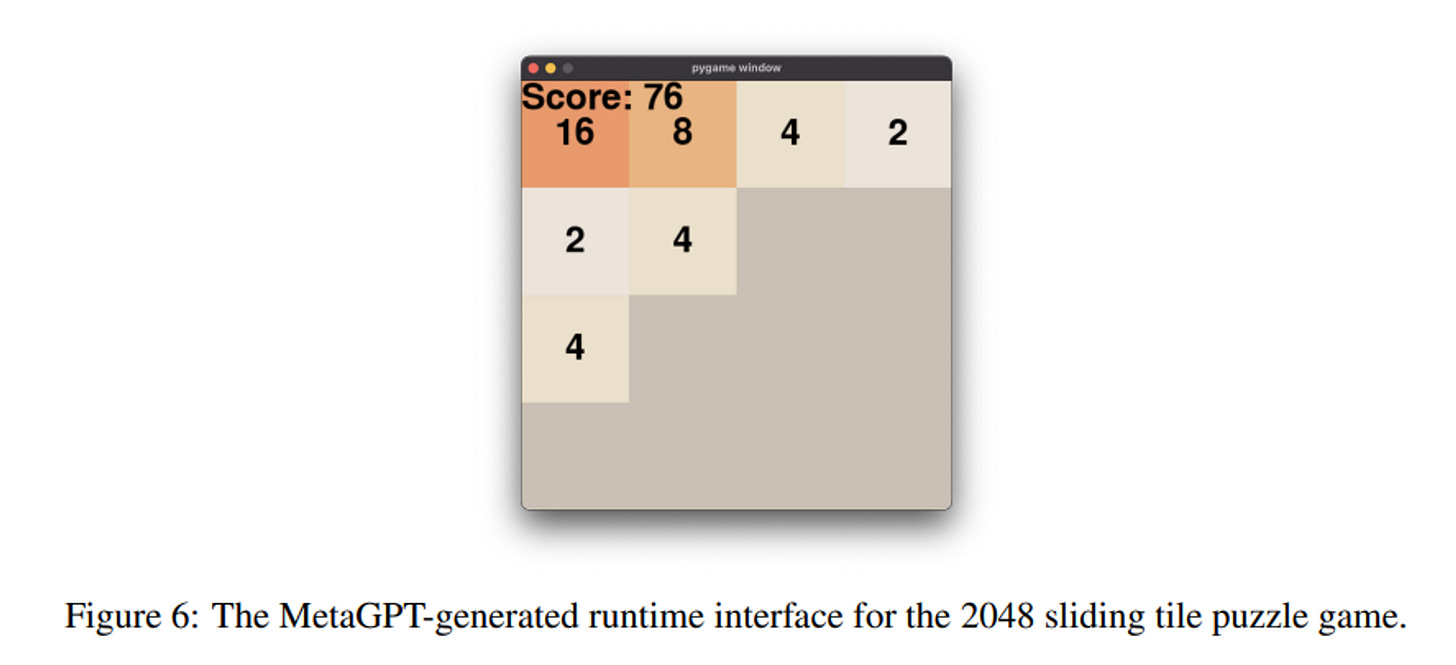 However, a more holistic evaluation would encompass other aspects such as ease of use, quality of the documentation, and the effort it took to build the application. MetaGPT is compelling because it produces work artifacts along with the code base such as product requirements document (PRD), system architecture and data flow diagrams, API specs, and a comparison of competing products. All these documents are in the team’s shared workspace and referenced as needed by the agents to continue working. In the paper, the example software the authors created was the 2048 game. The goal of the game is to slide the numbers around to combine them, creating larger and larger numbers until it reaches 2048. They were able to create working game along with work artifacts from a single line of instruction “Make the 2048 sliding tile number puzzle.”